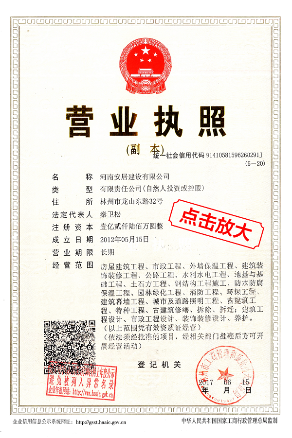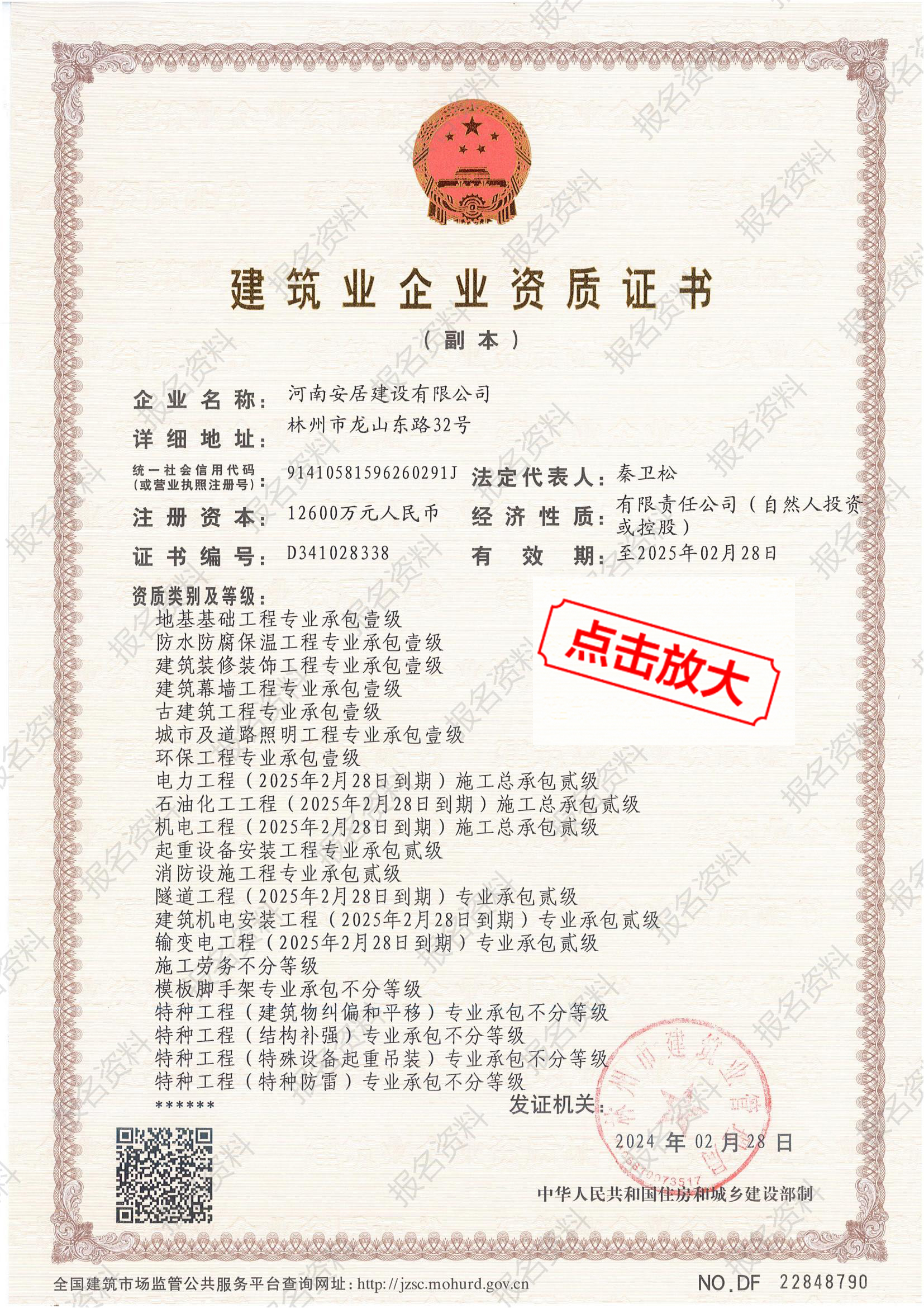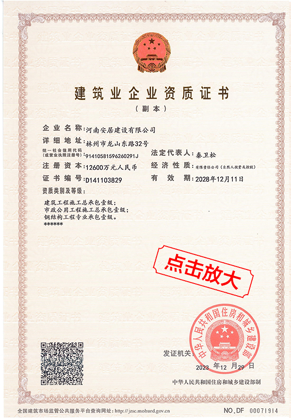 滔滔黃河哺育了中華民族拼搏向上的奮斗精神,巍巍太行造就了中原兒女的紅旗渠精神。百萬林州人下太行,鑄就了中國建筑之鄉(xiāng)響當(dāng)當(dāng)?shù)囊燮放?。河南安居建設(shè)有限公司從誕生起血液里就流淌著紅色基因,秉承“安得廣夏千萬間,大庇天下寒士俱歡顏”的擔(dān)當(dāng)精神,用鋼筋混凝土筑起了高樓大廈,也用一流品質(zhì)、家國情懷打造了安居建設(shè)的輝煌成績(jī)。公司成立于2012年,注冊(cè)資金12600萬元,公司成立至今,擁有建筑,市政施工總承包等十項(xiàng)一級(jí)資質(zhì);其他二級(jí)等資質(zhì)共二十余項(xiàng)。公司秉承質(zhì)量第一,服務(wù)為主,堅(jiān)持垂直管理,從不設(shè)立分公司等分支機(jī)構(gòu)。